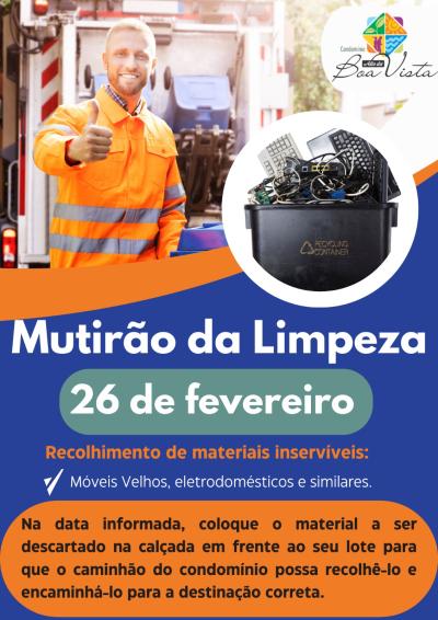 Informamos que amanhã, dia 26/02/2025 haverá recolhimento de materiais inservíveis como: eletrodomésticos, móveis e similares.